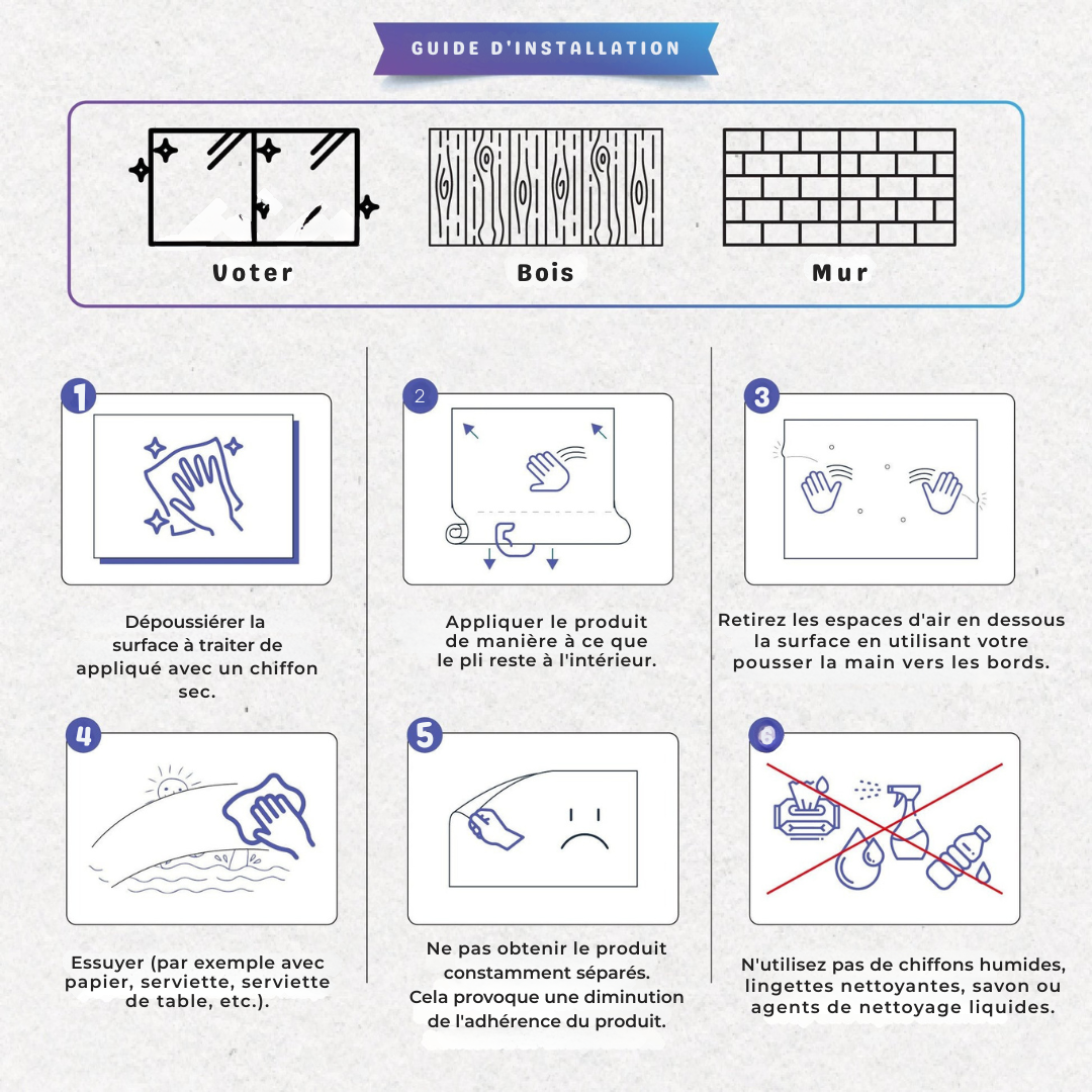 - Installation : Facile à appliquer avec cling statique, aucun outil nécessaire